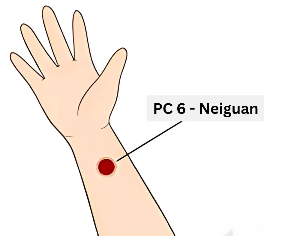 The PC6 point is located on the inner wrist, about three finger-widths up from the wrist crease. It’s one of the most researched acupressure points in modern science.